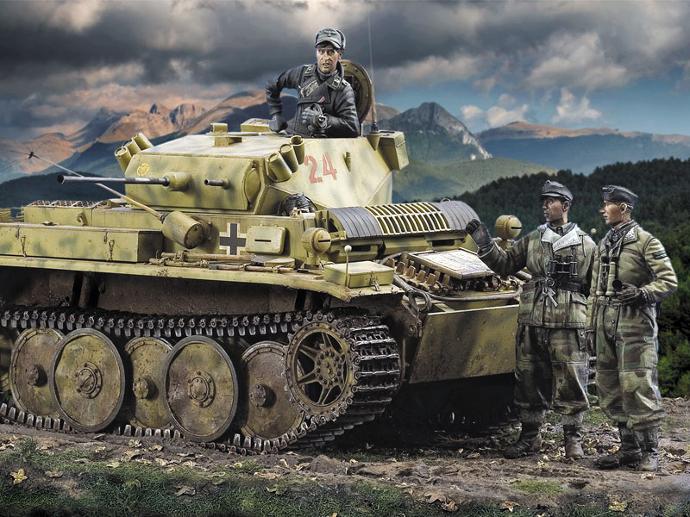 Matte und deckende Acrylfarben auf Wasserbasis, die speziell für die Verwendung mit dem Pinsel entwickelt wurden. Jede Farbe wurde in Zusammenarbeit mit dem Expertenteam von Euromodelismo entwickelt, um dem Modellbauer ein schnelles und praktisches System für die Bemalung der Panzerbesatzungen des Zweiten Weltkriegs zu bieten. Die Farbpalette wurde ausgewählt, um den Bemalungsprozess zu vereinfachen, und umfasst alle Farbtöne, die für die Uniformen der deutschen, amerikanischen, britischen, italienischen, französischen, russischen und japanischen Besatzungen benötigt werden, unter Verwendung der beliebten Figurenbemalungstechnik von Grundfarbe, Schatten und Highlights. Es wird empfohlen, die Farben auf eine zuvor grundierte Oberfläche aufzutragen; sie trocknen schnell und bilden eine homogene und selbstnivellierende Oberfläche, wobei selbst die kleinsten Details des Modells erhalten bleiben. Panzer Aces lässt sich sehr gut auf allen Untergründen auftragen und die Haftung der Farbe auf Resin, Plastik, Stahl und Weißmetall ist außergewöhnlich gut. Pinsel und Werkzeuge können mit Wasser gereinigt werden.